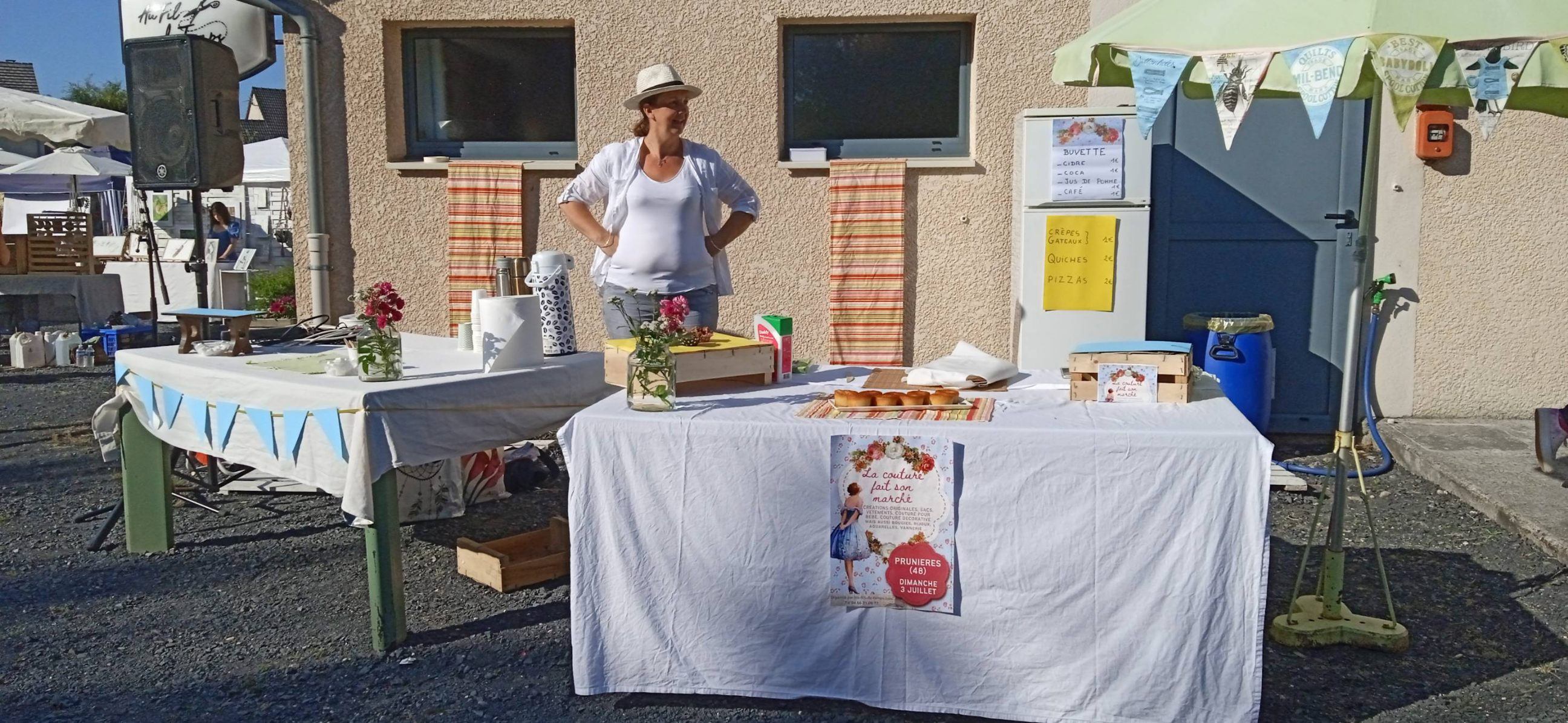 L’association des jeunes de Prunières tenait une buvette au Marché couture de la Mercerie « Au fil du temps » le dimanche 3 juillet dernier . Ils vendaient boissons, pizzas, quiches et gâteaux tout au long de la journée.