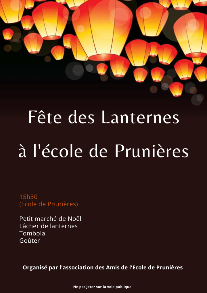 - 17 Décembre 2023 – Fête des lanternes à l’école de Prunières à 15h30
