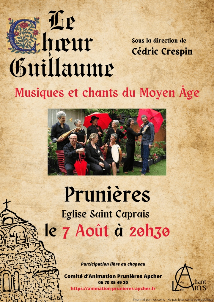 - 7 août 2024 – Le Chœur Guillaume en concert à l’église Saint Caprais de Prunières