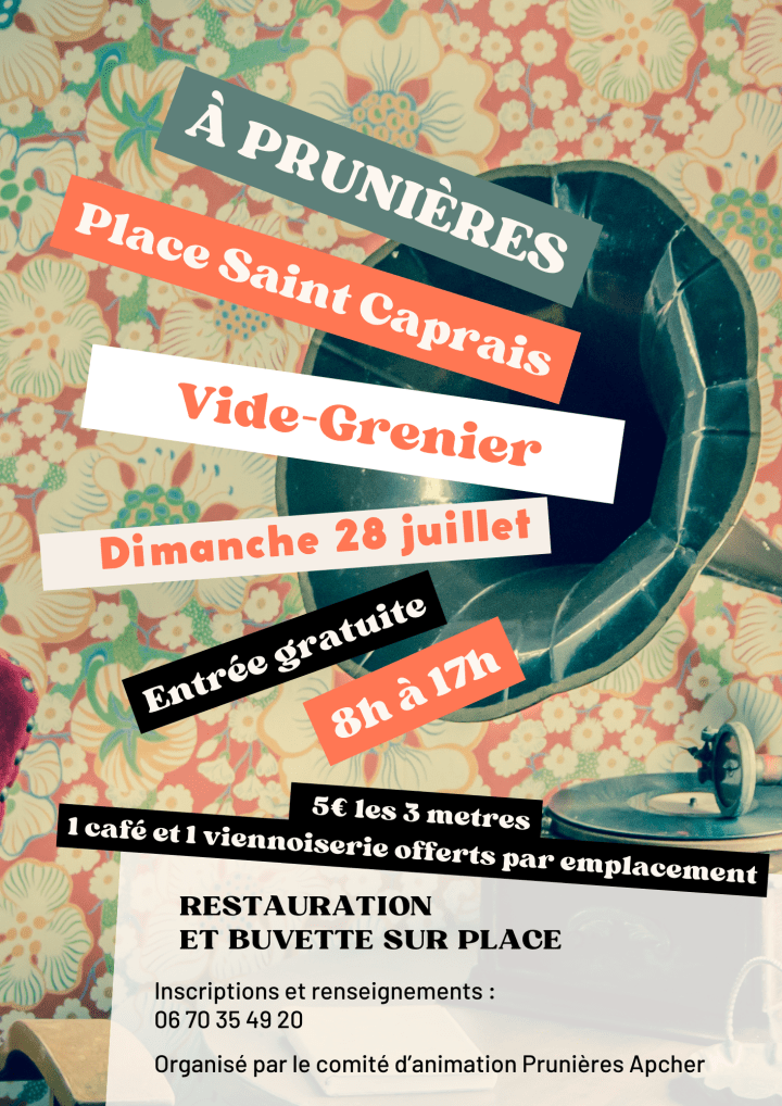 - 28 juillet 2024 – 8ème Vide grenier de Prunières