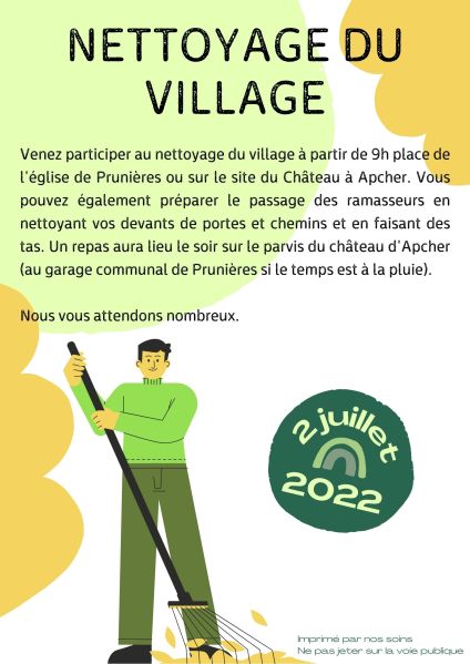 Samedi de nombreux habitants de Prunières et Apcher étaient au rendez vous pour le nettoyage annuel du Village. Le soir tout le monde s’est donné rendez vous au Château d’Apcher pour partager un repas en toute convivialité.